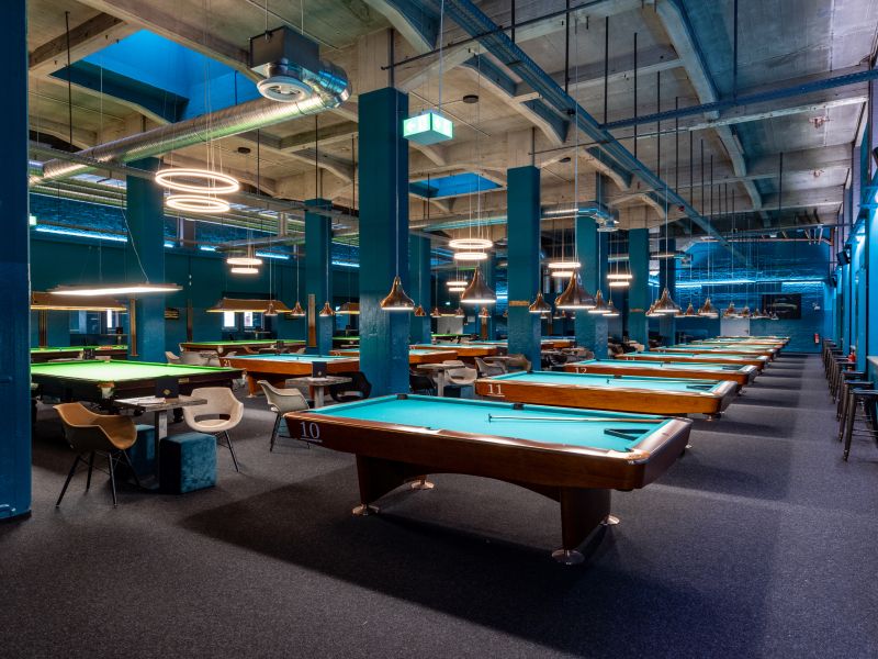 - 35 Pool Tische, 5 Snookertische, 13 Tischtennisplatten, 14 Steeldarts, 4 Kickertische